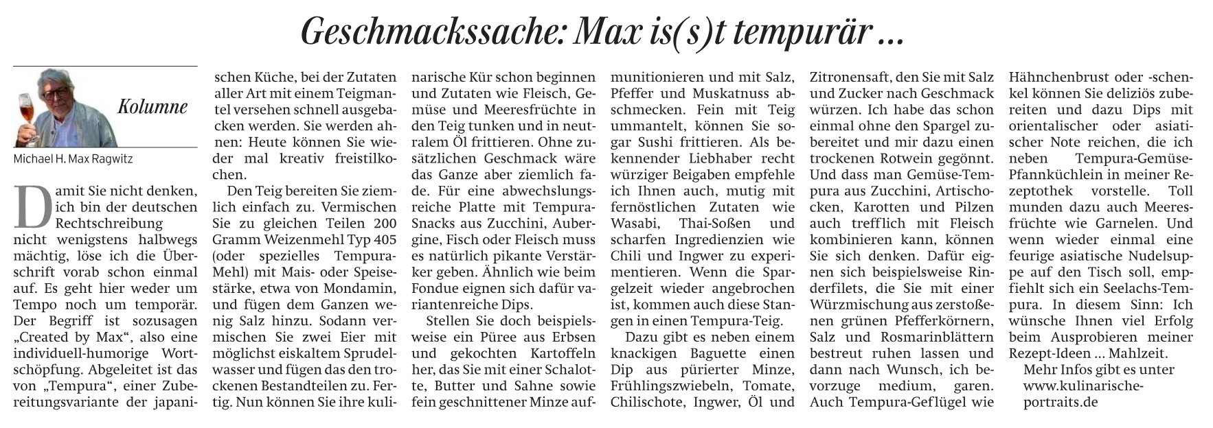 Max Ragwitz’ kulinarische Portraits © Impressum · AGB · Datenschutzerklärung
